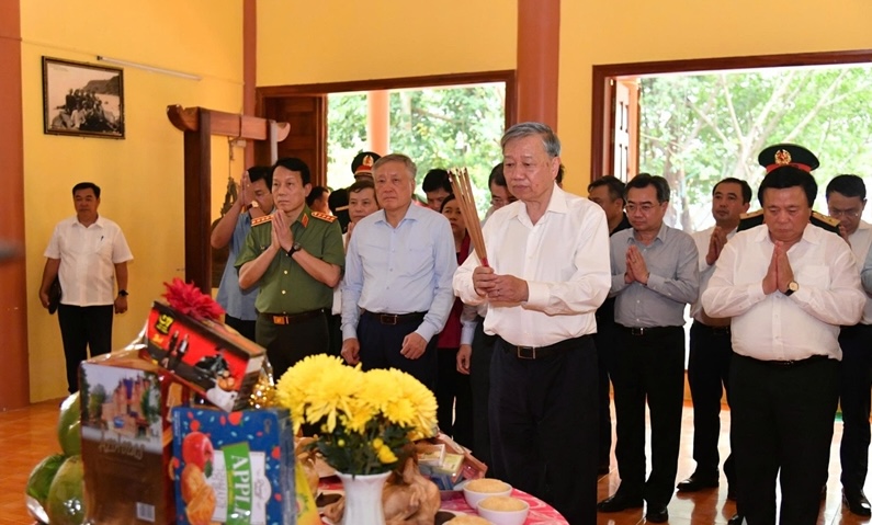 Tổng Bí thư Tô Lâm dâng hương tại Đền thờ Thổ Châu, trong chuyến thăm và làm việc tại đặc khu Thổ Châu. Ảnh: Báo Quân đội nhân dân
