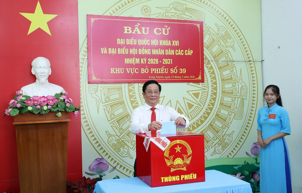 Cùng với cả nước, ngày 15/3/2026, gần 3,3 triệu cử tri tỉnh An Giang phấn khởi đi bầu cử đại biểu Quốc hội khóa XVI và đại biểu Hội đồng nhân dân các cấp nhiệm kỳ 2026-2031, để lựa chọn những người có tài, có đức xứng đáng đại diện cho ý chí, nguyện vọng của Nhân dân.