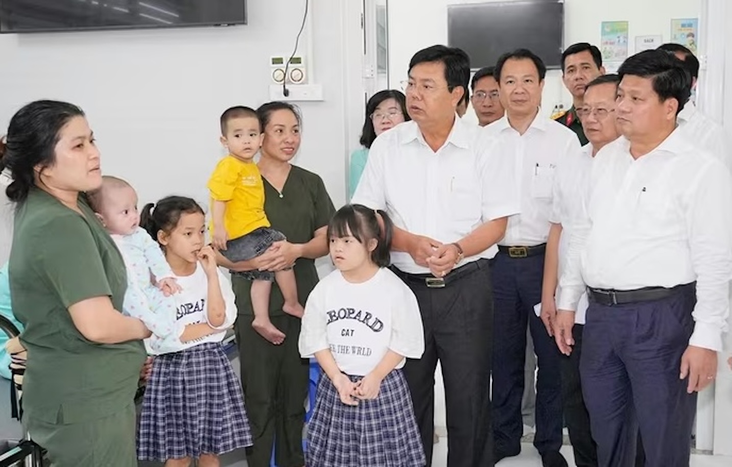 Đồng chí Nguyễn Tiến Hải, Ủy viên Trung ương Đảng, Bí thư Tỉnh ủy An Giang, thăm và chúc Tết tại Trung tâm Bảo trợ xã hội Kiên Giang.