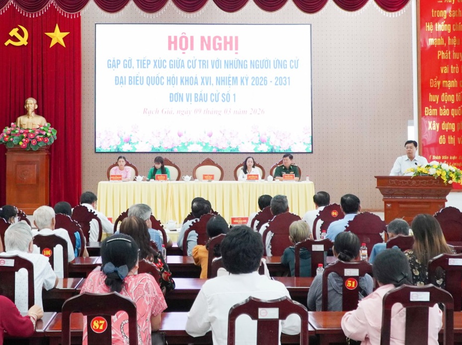 Sau khi Ban Thường trực Ủy ban Mặt trận Tổ quốc Việt Nam tỉnh giới thiệu tiểu sử tóm tắt của các ứng cử viên đại biểu Quốc hội khóa XVI đơn vị bầu cử số 1; các ứng cử viên trình bày chương trình hành động nếu được trúng cử. Cử tri phường Rạch Giá đánh giá cao chương trình hành động của các ứng cử viên; đồng thời mong muốn các ứng cử viên sau khi trúng cử thực hiện tốt vai trò, trách nhiệm của đại biểu dân cử, là cầu nối đưa tiếng nói của cử tri đến Quốc hội và các cơ quan chức năng.