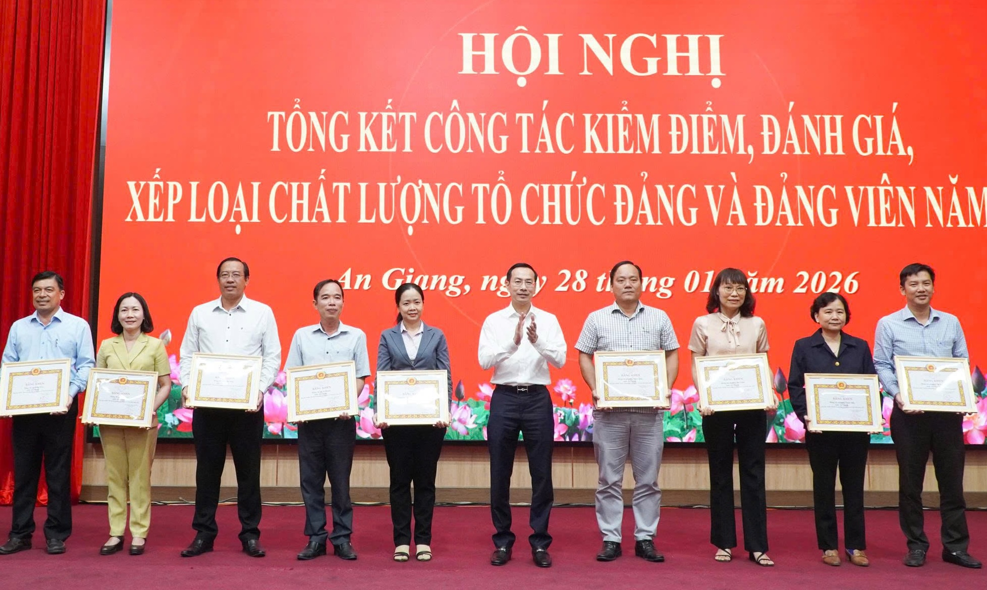 Chiều 28/01/2026, Ban Thường vụ Tỉnh ủy An Giang tổ chức Hội nghị tổng kết công tác kiểm điểm, đánh giá, xếp loại chất lượng tổ chức đảng và đảng viên năm 2025. Các đồng chí: Nguyễn Thanh Nhàn, Phó Bí thư Thường trực Tỉnh ủy, Chủ tịch Hội đồng nhân dân tỉnh; Lâm Minh Thành, Phó Bí thư Tỉnh ủy; Trần Thị Thanh Hương, Phó Bí thư Tỉnh ủy, Trưởng Đoàn đại biểu Quốc hội tỉnh, Chủ tịch Ủy ban Mặt trận Tổ quốc Việt Nam tỉnh, chủ trì hội nghị.
