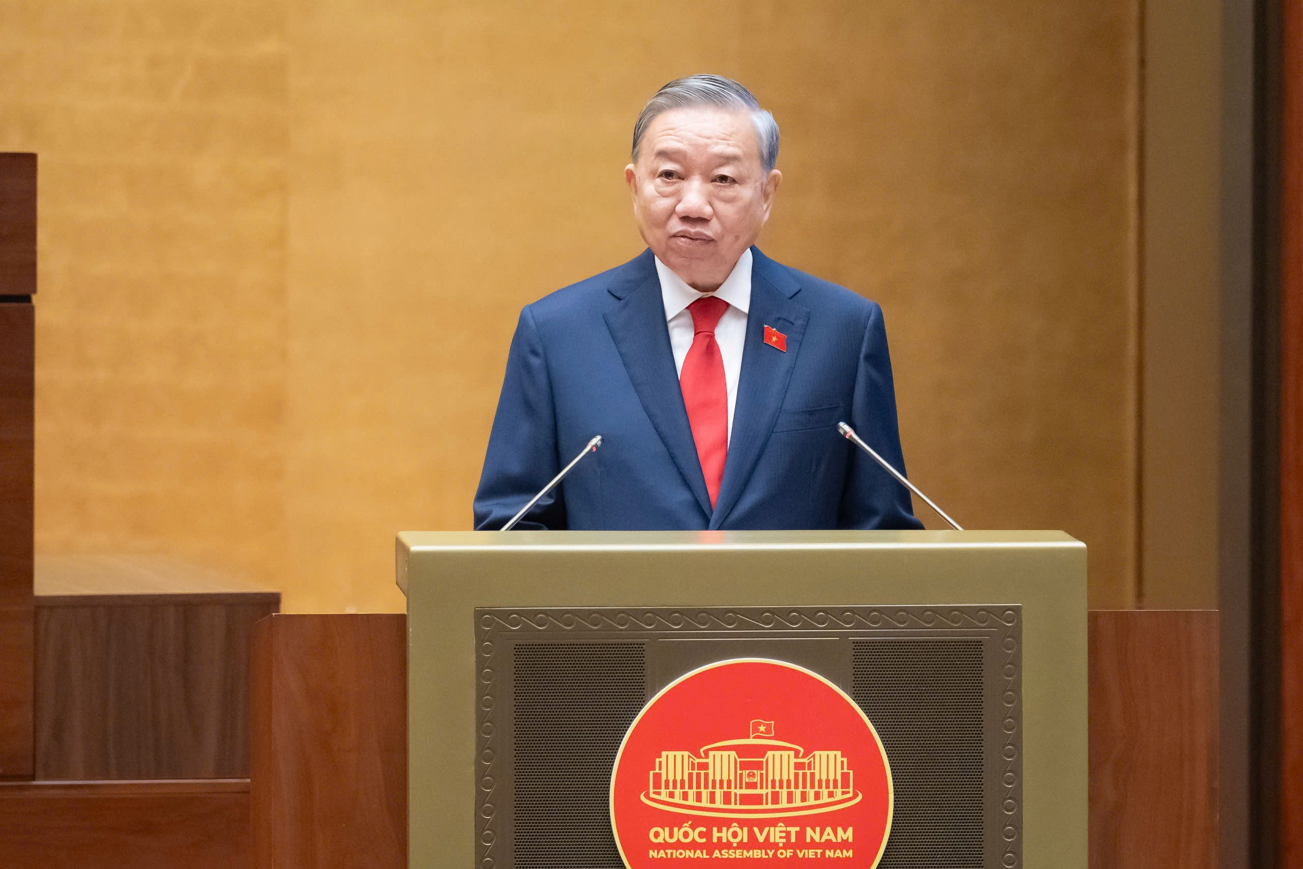 Sau khi được Quốc hội bầu giữ chức Chủ tịch nước, đồng chí Tô Lâm, Tổng Bí thư Ban Chấp hành Trung ương Đảng Cộng sản Việt Nam, Chủ tịch nước Cộng hòa xã hội chủ nghĩa Việt Nam nhiệm kỳ 2026-2031 đã thực hiện Lễ Tuyên thệ nhậm chức. Trước Quốc hội và đồng bào, cử tri cả nước, Chủ tịch nước Tô Lâm tuyên thệ: "Dưới cờ đỏ sao vàng thiêng liêng của Tổ quốc, trước Quốc hội và đồng bào, cử tri cả nước, tôi - Chủ tịch nước Cộng hòa xã hội chủ nghĩa Việt Nam xin tuyên thệ: Tuyệt đối trung thành với Tổ quốc, với Nhân dân, với Hiến pháp nước Cộng hòa xã hội chủ nghĩa Việt Nam, nỗ lực phấn đấu, hoàn thành tốt mọi nhiệm vụ được Đảng, Nhà nước và Nhân dân giao phó".