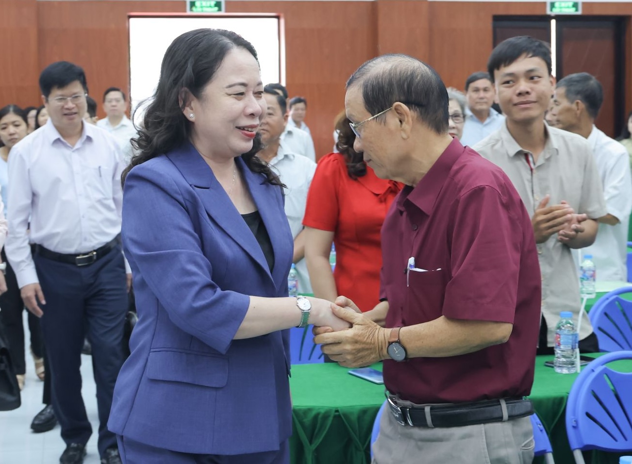 Đồng chí Võ Thị Ánh Xuân, Bí thư Trung ương Đảng, Phó Chủ tịch nước, Phó Chủ tịch Hội đồng Bầu cử Quốc gia, với cử tri xã Chợ Mới, tỉnh An Giang. Ảnh: VPCTN