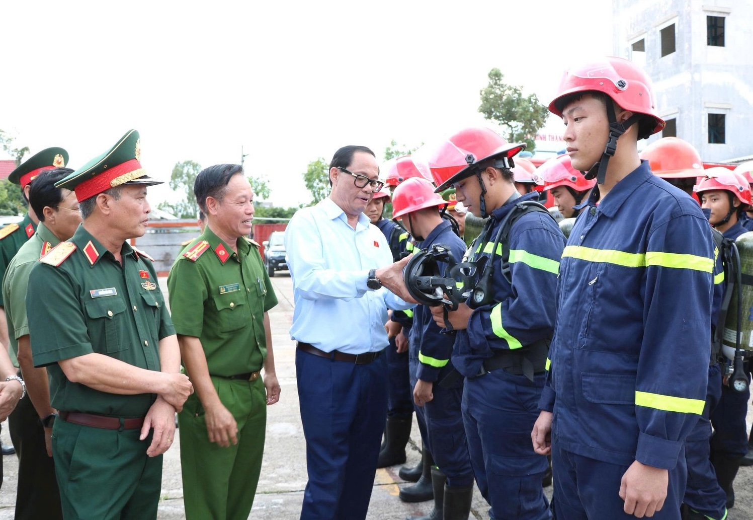 Thượng tướng Trần Quang Phương, Phó Chủ tịch Quốc hội, kiểm tra công tác bảo vệ bầu cử, tại Phòng Cảnh sát phòng cháy, chữa cháy và cứu nạn, cứu hộ, Công an tỉnh An Giang. Ảnh: Cổng TTĐT Bộ Công an