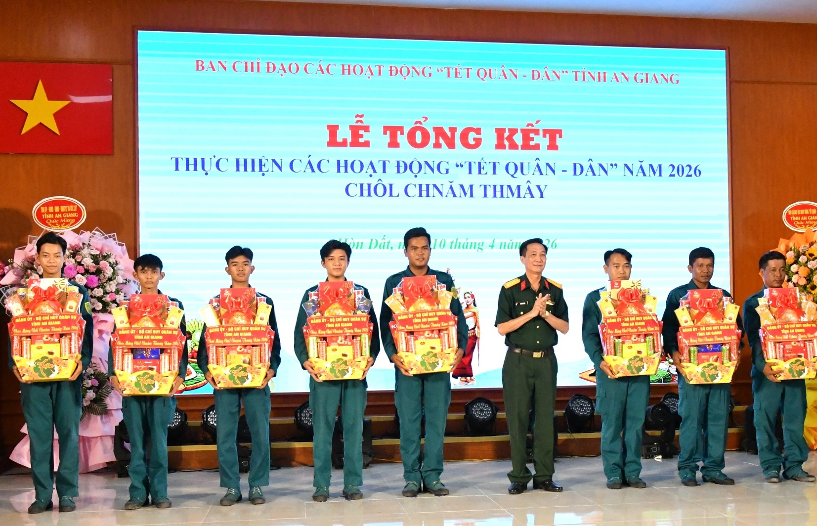 Ban Chỉ đạo các hoạt động “Tết Quân - Dân” tỉnh An Giang tổ chức tổng kết “Tết Quân - Dân” năm 2026 Chôl Chnăm Thmây tại xã Hòn Đất. Ảnh: FB Hòn Đất