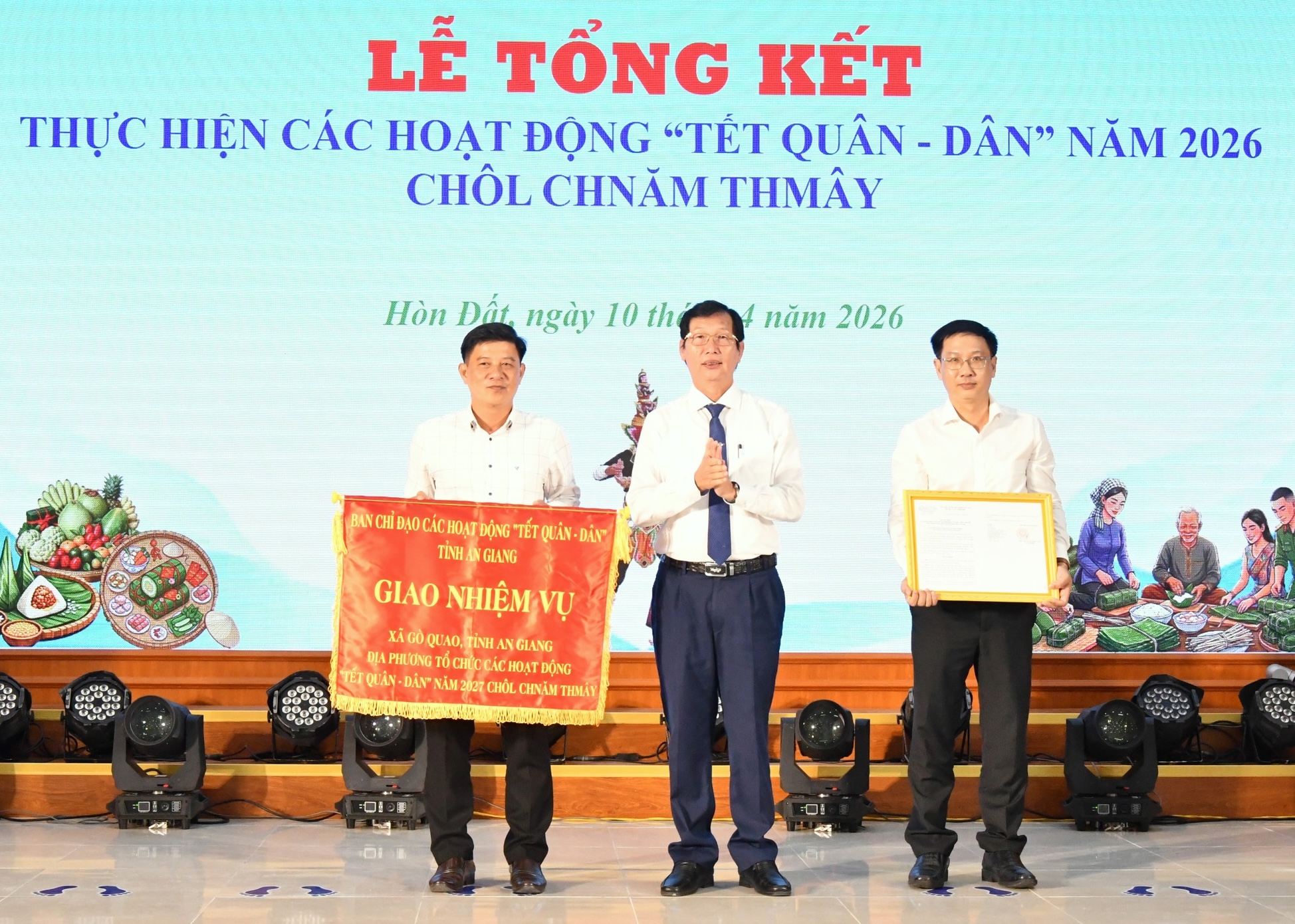 Tại lễ tổng kết “Tết Quân - Dân” năm 2026 Chôl Chnăm Thmây vừa qua, Ban Chỉ đạo các hoạt động “Tết Quân - Dân” tỉnh An Giang công bố quyết định giao nhiệm vụ tổ chức các hoạt động “Tết Quân -Dân” năm 2027 Chôl Chnăm Thmây cho xã Gò Quao. Theo đó, chương trình sẽ tiếp tục bám sát mục tiêu phát triển kinh tế - xã hội, xây dựng nông thôn mới, đồng thời gắn với nhiệm vụ củng cố quốc phòng - an ninh trên địa bàn; góp phần tạo sự gắn bó quân và dân ngày càng bền chặt.