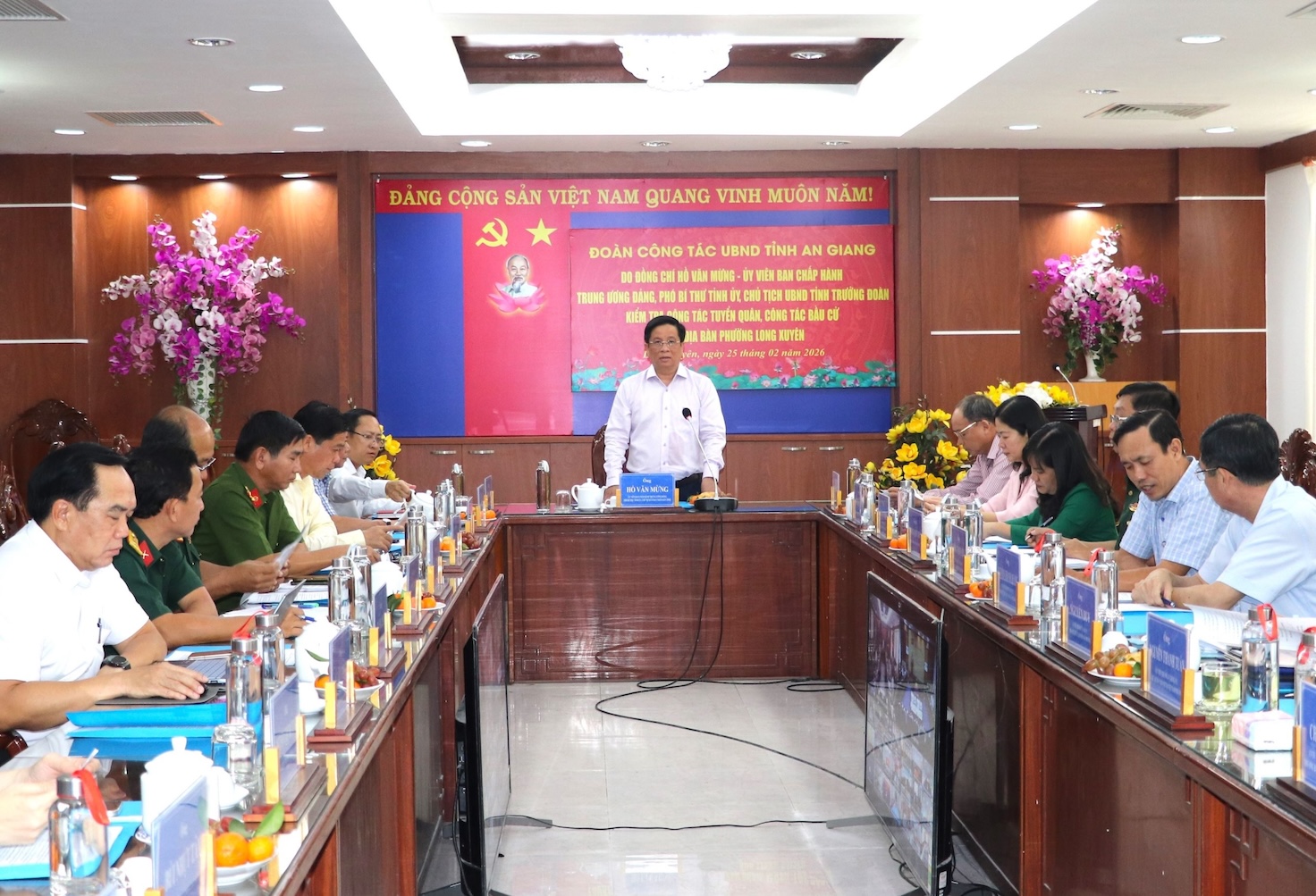 Đồng chí Hồ Văn Mừng, Uỷ viên Trung ương Đảng, Phó Bí thư Tỉnh uỷ, Chủ tịch Uỷ ban nhân dân tỉnh An Giang, kiểm tra công tác bầu cử tại phường Long Xuyên. Ảnh: Cổng TTĐT tỉnh An Giang
